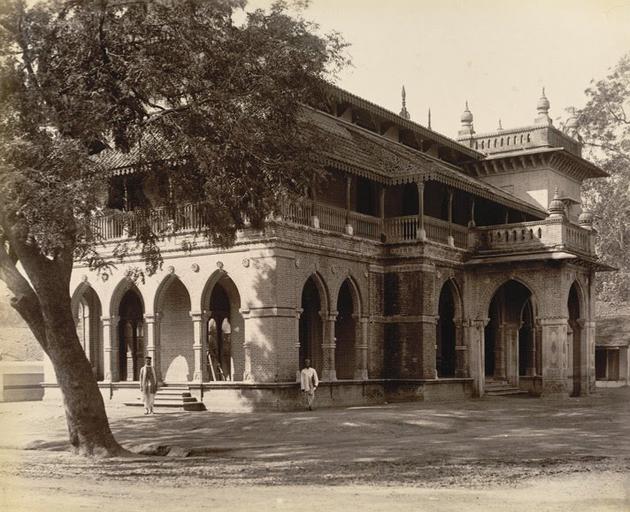 Keywords: State Library at Baroda in the 1890s.jpg en Photograph of the State Library at Baroda Gujarat from the Curzon Collection taken by an unknown photographer during the 1890s The library was built in 1876 and designed by Major Charles Mant 1840-81 in the Indo-Saracenic style He was a pioneer of the style and used it in his designs for other civic and state buildings in Baroda such as the Countess of Dufferin hospital and his masterpiece the Lakshmi Vilas Palace The library is one of the public offices contained within the Juni Kothi or old fort It predates the Baroda Library movement initiated in c 1910 by the Gaekwar Maharaja Sayaji Rao III ruled 1875-1939 which founded the Central Library a system of state-aided libraries reading rooms travelling libraries and the first library school in India s 1890 http //www oldindianphotos in/2010_07_04_archive html author other versions Custom license marker 2014 11 26 PD-100 Vadodara in the 1890s Uploaded with UploadWizard Libraries in Gujarat British Library Photo 430 Curzon Collection |