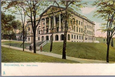 | Keywords: vcu libraries vculibraries vcu digital collections vcudigitalcollections outdoor serene building architecture Description: The State Library is situated in Capitol Square, on the summit of Shockoe Hill; it is the largest library in the city, containing over 100,000 volumes, in addition to which there are many portraits of historical personages, and rare manuscripts. The Library is regarded as one of the best in the U.S. Manufacturer: Tuck & Sons' Date Postmarked: Not postmarked. Rights: This item is in the public domain. Acknowledgement of the Virginia Commonwealth University Libraries as a source is requested. Reference URL: dig.library.vcu.edu/u?/postcard,313 Collection: Rarely Seen Richmond: Early twentieth century Richmond as seen through vintage postcards Description: The State Library is situated in Capitol Square, on the summit of Shockoe Hill; it is the largest library in the city, containing over 100,000 volumes, in addition to which there are many portraits of historical personages, and rare manuscripts. The Library is regarded as one of the best in the U.S. Manufacturer: Tuck & Sons' Date Postmarked: Not postmarked. Rights: This item is in the public domain. Acknowledgement of the Virginia Commonwealth University Libraries as a source is requested. Reference URL: dig.library.vcu.edu/u?/postcard,313 Collection: Rarely Seen Richmond: Early twentieth century Richmond as seen through vintage postcards |