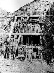 | Keywords: StateLibQld 1 100884.jpg en Railway workers standing in front of a tunnel at Cairns Group of railway workers involved in the construction of a tunnel on the Cairns railway line The men have grouped at the entrance to railway tunnel and are standing on large timber girders and supports handle 10462/deriv/69515 Item is held by John Oxley Library State Library of Queensland PD-Australia StateLibQld-License Tunnel construction Rail construction in Australia Construction workers Railways in Cairns |