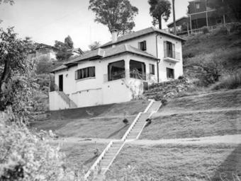 Keywords: StateLibQld 1 101200.jpg en Split level private dwelling Brisbane ca 1935 Split level home with tiled roof and stucco exterior Three levels of garden steps lead up to the house and a rock retaining wall can be seen at the top of the steps A large outdoor room is closest to the steps on the lower level Leadlight windows with a diamond pattern are open to the breeze French doors open onto a small balcony on the upper level ~ 1935 handle 10462/deriv/69091 Item is held by John Oxley Library State Library of Queensland PD-Australia StateLibQld-License Houses in Brisbane Retaining walls in Australia