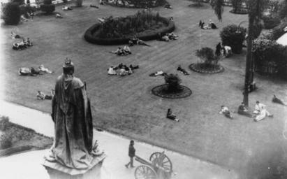| Keywords: StateLibQld 1 102248 Queen's Park, Brisbane, ca. 1935.jpg en Queen's Park Brisbane ca 1935 Elevated view of Queen's Park from the Executive building Queen Victoria's statue stands in the foreground overlooking people relaxing on the lawn below The statue was unveiled by Lord Chelmsford on 23 June 1906 Field guns were located in the park either side of the Queen Victoria memorial commemorating Queensland's participation in the South African War of 1899-1902 circa 1935 handle 10462/deriv/68327 Item is held by John Oxley Library State Library of Queensland PD-Australia StateLibQld-License Unidentified Arecaceae low quality Lawns in Australia 1935 in Brisbane Black and white photographs of Brisbane Statue of Queen Victoria Brisbane Arecaceae in Australia Queens Gardens Brisbane |