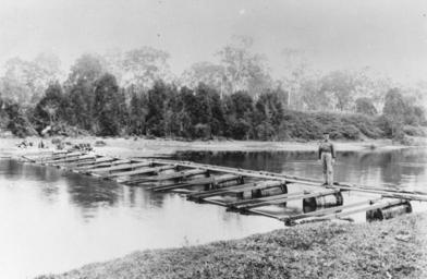 | Keywords: StateLibQld 1 102520 Bridge building at the Royal Australian Engineers camp at Enoggera, Brisbane.jpg supplied with photograph 1914 handle 10462/deriv/89773 Item is held by John Oxley Library State Library of Queensland PD-Australia StateLibQld-License Footbridges in Queensland Military buildings in Australia Rivers of Queensland Military people of Australia Enoggera Queensland 1914 in Brisbane Black and white photographs Royal Australian Engineers | ||||
