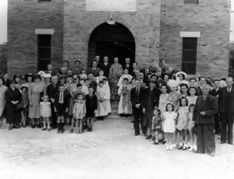 | Keywords: StateLibQld 1 103534 Congregation of St. Theodores Greek Orthodox Church in Townsville, 1947.jpg en Congregation of St Theodores Greek Orthodox Church in Townsville 1947 Congregation and priest Father George Cateris outside St Theodores Greek Orthodox Church in Townsville 1947 1947 handle 10462/deriv/90751 Item is held by John Oxley Library State Library of Queensland PD-Australia StateLibQld-License Groups of people in Australia 1947 in Queensland Black and white photographs St Theodore's Greek Orthodox church Townsville |
