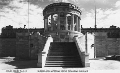 | Keywords: StateLibQld 1 106428 Anzac Memorial, Brisbane, ca. 1939.jpg en Anzac Memorial Brisbane ca 1939 This view of the Anzac Memorial at Anzac Square in Brisbane includes the stairs brickwork columns railing and lighting There is a view of the Central Railway Station and clock tower in the the background circa 1939 handle 10462/deriv/92893 Item is held by John Oxley Library State Library of Queensland PD-Australia StateLibQld-License Shrine of Remembrance Brisbane Stairs in Australia Plaques in Queensland Australia in World War I 1939 in Australia Black and white photographs |