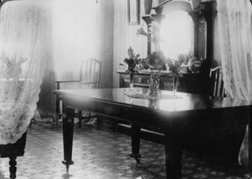 | Keywords: StateLibQld 1 107500 Dining room at Moorhouse, a residence in Latrobe Terrace, Paddington, ca. 1915.jpg en Dining room at Moorhouse a residence in Latrobe Terrace Paddington ca 1915 Dining table in the foreground and a sideboard with a large mirror attached in the background Patterned lino covers the floor and lace curtains frame the room circa 1915 handle 10462/deriv/91990 Item is held by John Oxley Library State Library of Queensland PD-Australia StateLibQld-License Dining rooms in Queensland Dining tables in Australia Furniture in Australia Interior decoration in Australia Houses in Paddington Queensland Black and white photographs Sideboards |