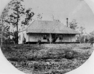 | Keywords: StateLibQld 1 109312 Hurdcott, William Nicholson's house at Grovely, Brisbane, Queensland, ca. 1864.jpg supplied with photograph Grovely is situated in the valley between the Taylor Range and Arana Hills In 1864 Messrs John and William Nicholson purchased land in the locality which was then known as Kedron Brook and on this they formed an extensive vineyard Some land was set apart by the Nicholsons for a Church of England and in 1867 the Govenor Sir George Bowen laid the foundation stone of the Grovely Church of England Gradually the district around the church became known as Grovely Bricks for the church building were made in John Nicholson's paddock which is now the area containing the Mitchelton Railway Station circa 1864 handle 10462/deriv/128772 Item is held by John Oxley Library State Library of Queensland PD-Australia StateLibQld-License Verandas on single story Queensland houses Chimneys in Queensland Grovely Queensland Black and white photographs Houses in Brisbane |