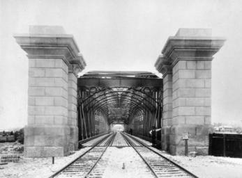 | Keywords: StateLibQld 1 109600 Indooroopilly Railway Bridge, Brisbane, 1895.jpg en Indooroopilly Railway Bridge Brisbane 1895 The second Indooroopilly Railway Bridge was opened on August 17 1895 It replaced the Albert Railway Bridge which was washed away in the 1893 flood The bridge was designed by Henry Charles Stanley Chief Engineer of Railways and at the time was the largest bridge in Australia which was wholly of local manufacture The bridge consisted of two steel spans supported on abutments of masonry and a central concrete pier encased in an iron caisson to low water mark and then built up with masonry to the bearings of the girders Each span was 10 3 m long and each weighed about 610 tonnes A neatly designed footway was carried on the bridge's upstream side Stanley's bridge is still in use today although it has been supplemented with an adjacent bridge to cope with increased traffic Information taken from Janet Hogan Living history of Brisbane 1982 Image shows a view through the bridge with the stone pylons at one end The railway tracks are clearly visible 1895 handle 10462/deriv/129079 Item is held by John Oxley Library State Library of Queensland PD-Australia StateLibQld-License Albert Bridge Brisbane 1895 in Brisbane Black and white photographs of Australia in the 1890s Black and white photographs of bridges Bridges in Australia photographed in 1895 |