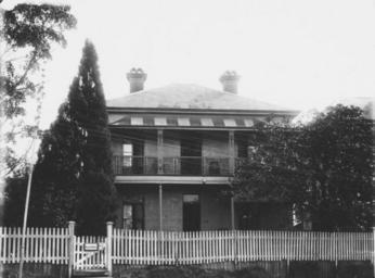 | Keywords: StateLibQld 1 111532 Wesleyan Manse on Wickham Terrace, Brisbane, ca. 1900.jpg en Wesleyan Manse on Wickham Terrace Brisbane ca 1900 Home of the Methodist minister Rev G E Rowe Where this brick two storey building stood is now the site of Anzac House in Wickham Terrace Information supplied with photograph circa 1900 handle 10462/deriv/131854 Item is held by John Oxley Library State Library of Queensland PD-Australia StateLibQld-License Brick houses in Queensland Verandas on two story Queensland houses Chimneys in Queensland Picket fences in Queensland 1900 in Australia Black and white photographs Wickham Terrace Brisbane Church residencies Queensland |