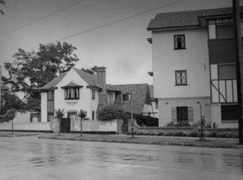 | Keywords: StateLibQld 1 119472 Old English style residences in New Farm ca. 1935.jpg en Old English style residences in New Farm ca 1935 Old English style residences in Moray St near Julius St New Farm ca 1935 The house on the left has a central bay window and a dormer window set in the tiled roof near the chimney The building on the right is a block of flats and has a tiled roof Windows are of leadlight with shutters on the ground floor window Both buildings are of stucco with tiled rooves circa 1935 handle 10462/deriv/108443 Item is held by John Oxley Library State Library of Queensland PD-Australia StateLibQld-License Houses in New Farm Queensland 1935 in Queensland Black and white photographs |