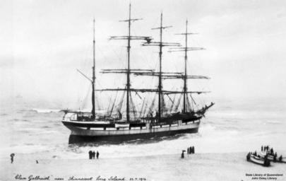 | Keywords: StateLibQld 1 128295 Clan Galbraith (ship).jpg supplied with photograph Clan Galbraith 2 149 ton steel four masted barque built 1894 Sold Norway in 1910 1917 sunk by U-boat in 1917 <ref>http //www theshipslist com/ships/lines/queen htm The Ships List The Fleets Thomas Dunlop Sons / Queen Line</ref> de Die žClan Galbraith war eine norwegische Viermastbark Während des 1 Weltkrieges hatte sie die norwegische Fahne auf die Bordseiten gemahlt bekommen um wegen der möglichen U-Boot-Atacken ihre Neutralität herauszustellen Am 22 Juli 1916 strandete das Schiff vor Long Island New York <small>http //query nytimes com/gst/abstract html res F50813F93E5F17738DDDAA0A94DF405B868DF1D3</small> kam jedoch wohl wieder frei denn sie wurde am 24 April 1917 durch das deutsche U-Boot U70 versenkt <small>http //www uboat net/wwi/ships_hit/1325 html</small> 1916-07-22 handle 10462/deriv/82429 Item is held by John Oxley Library State Library of Queensland author Reflist PD-Australia StateLibQld-License Clan Galbraith ship 1894 Shipwrecks in New York 1916 in New York Grounded ships Black and white photographs |