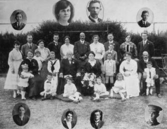 | Keywords: StateLibQld 1 128779 Golden wedding anniversary of Angus and Catherine Gibson, at Bingera, 1916.jpg supplied with photograph 1916 handle 10462/deriv/77914 Item is held by John Oxley Library State Library of Queensland PD-Australia StateLibQld-License Portraits of Queensland Men's clothing of Australia Lounge suits in Australia Dresses in Australia Sailor suits in Australia Flowers of Australia Military people of Australia Women's clothing of Australia Children's clothing of Australia Bundaberg Queensland 1916 in Australia Black and white photographs |