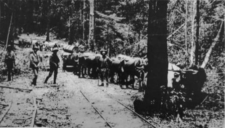 MAKE A MEME View Large Image ...Qld 1 128835 Bullock team hauling logs in Brookfield, Brisbane, ca. 1890.jpg en Bullock team hauling logs in Brookfield Brisbane ca 1890 Fourteen-head bullock team hauling logs on a tramline down a spur to the loading ramp The logs were ...