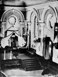 | Keywords: StateLibQld 1 134861 Brisbane's first School of Arts building on the corner of Queen and Creek Streets, ca. 1872.jpg en Brisbane's first School of Arts building on the corner of Queen and Creek Streets ca 1872 The School of Arts building is arranged for a Masonic ceremony in the early 1870s This venue was used temporarily by the North Australian Lodge when a new meeting place had to be found in 1872 The brethren left the Old Masonic Hall and later moved to the Town Hall which became their new quarters The North Australian Lodge was the first established in the Colony and derived its name from the hotel in Queen Street where its earliest meetings had taken place John Petrie Sir Charles Lilley and Ratcliffe Pring were foundation members of this distinguished group of freemasons Please note that this image is inverted The early part of William Boag's career was spent in Sydney where he was in partnership with portrait photographer Joseph Charles Milligan Images made by Boag are in the collection of the Campbelltown and Airds Historical Society Boag arrived in Queensland in November 1871 He travelled around the south-east along the foreshore of Moreton Bay and the township of Cleveland He then moved into the Logan and Albert area where he captured images of local crushing mills and sugar plantations While at Yatala he took on a partner John Henry Mills and by the end of 1872 both men were in Stanthorpe where they remained for several months producing views of the booming tin-mining settlement In July 1873 after stopping off in Warwick Boag and Mills extended their operations to Mackay where they remained until October 1875 During this time Boag made trips to St Lawrence and Cooktown however his movements after this are difficult to trace It is known that by mid 1876 he was at Copperfield and Clermont and in February 1878 he inserted a notice in the Peak Downs Telegram announcing that he was leaving for the west Then information ceases abruptly It is possible that Boag never reached his destination since his death certificate records that he died in 1878 at an unknown location circa 1872 handle 10462/deriv/9446 Item is held by John Oxley Library State Library of Queensland Boag William 1838 -1878 PD-Australia StateLibQld-License Masonic buildings in Queensland Building interiors in Queensland Furniture in Australia Educational buildings in Brisbane Black and white photographs |