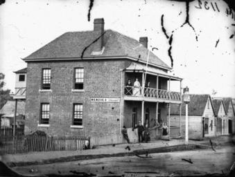 | Keywords: StateLibQld 1 134945 Menzies Boarding House on the north face of Edward Street, Brisbane, ca. 1872.jpg en Menzies Boarding House on the north face of Edward Street Brisbane ca 1872 The early part of William Boag's career was spent in Sydney where he was in partnership with portrait photographer Joseph Charles Milligan Images made by Boag are in the collection of the Campbelltown and Airds Historical Society Boag arrived in Queensland in November 1871 He travelled around the south-east along the foreshore of Moreton Bay and the township of Cleveland He then moved into the Logan and Albert area where he captured images of local crushing mills and sugar plantations While at Yatala he took on a partner John Henry Mills and by the end of 1872 both men were in Stanthorpe where they remained for several months producing views of the booming tin-mining settlement In July 1873 after stopping off in Warwick Boag and Mills extended their operations to Mackay where they remained until October 1875 During this time Boag made trips to St Lawrence and Cooktown however his movements after this are difficult to trace It is known that by mid 1876 he was at Copperfield and Clermont and in February 1878 he inserted a notice in the Peak Downs Telegram announcing that he was leaving for the west Then information ceases abruptly It is possible that Boag never reached his destination since his death certificate records that he died in 1878 at an unknown location This boarding house was owned by John Menzies a former licensed victualler and was situated between Margaret and Mary streets It probably had just been erected when William Boag arrived back in town from Cleveland to photograph Brisbane's houses shops and public buildings circa 1872 handle 10462/deriv/9211 Item is held by John Oxley Library State Library of Queensland Boag William 1838 -1878 PD-Australia StateLibQld-License Street lights in Queensland Balcony railings 1872 in Brisbane Black and white photographs Black and white photographs of Brisbane 1872 Guest houses in Queensland Verandas on guest houses Queensland |