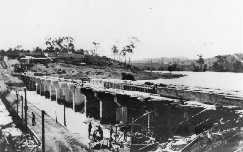 Keywords: StateLibQld 1 136590 Weir and bridge over the Brisbane River at Mount Crosby, 1926.jpg en Weir and bridge over the Brisbane River at Mount Crosby 1926 1926 handle 10462/deriv/10806 Item is held by John Oxley Library State Library of Queensland PD-Australia StateLibQld-License Bridges in Brisbane Dam construction Brisbane River Mount Crosby Weir Water supply in Brisbane 1926 in Brisbane Black and white photographs of Australia in the 1920s Bridges in Australia photographed in 1926 Weirs in Queensland Images from the State Library of Queensland |