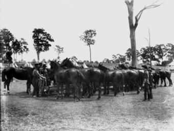 | Keywords: StateLibQld 1 138055 Watering the horses at the Enoggera Army Camp, ca 1914.jpg en Watering the horses at the Enoggera Army Camp ca 1914 Poul C Poulsen founder of the Poulsen Studios in Brisbane was born in Denmark in 1857 and arrived in Sydney in 1876 In 1882 he moved to Queensland and was later joined by his sisters and brothers from Denmark He opened his own studio at no 7 Queen Street in 1885 and later opened branches run by his brothers in other Queensland towns Poulsen vigorously advertised constant improvements and modernisation in his studio and in the service he provided His sons and grandson followed in his footsteps circa 1914 handle 10462/deriv/9720 Item is held by John Oxley Library State Library of Queensland Poulsen Poul C 1857-1925 PD-Australia StateLibQld-License Horses of Queensland Military buildings in Australia Tents in Australia Enoggera Queensland 1914 in Queensland Black and white photographs Army camps of Queensland |