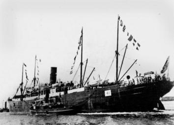 | Keywords: StateLibQld 1 141895 Manchester Port (ship).jpg en 5 658 GRT cargo steamship Manchester Port built in Jarrow by Palmer's Shipbuilding Iron Co in 1899 for Manchester Liners Ltd In 1900 British South American SN Co acquired her and renamed her Hydaspes She was scrapped in Genoa in 1930 <br> This photo is from The Queenslander newspaper 26 May 1900 It is captioned Good-bye to the Imperial Contingent - The 'Manchester Port' leaving Brisbane handle 10462/deriv/21543 Item is held by John Oxley Library State Library of Queensland PD-Australia StateLibQld-License Manchester Port ship 1899 Black and white photographs of ships Images from The Queenslander DEFAULTSORT Manchester Port 1900 |