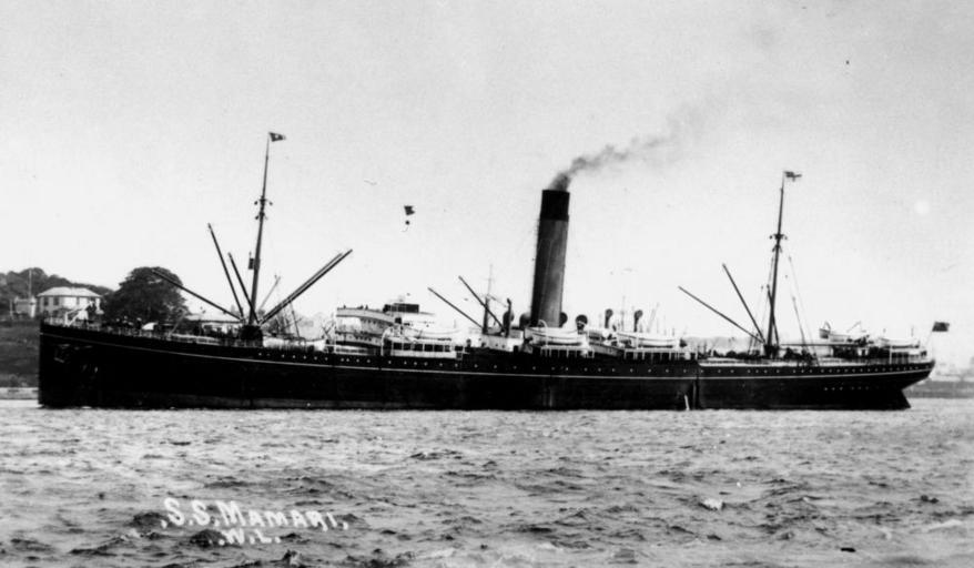 | Keywords: StateLibQld 1 144547 Mamari (ship).jpg SS Mamari 7 772 GRT built in 1904 by Harland and Wolff for Shaw Savill and Albion Line Sold in 1928 to Arnold Bernstein and renamed Gerolstein Sold in 1939 to H C Horn tonnage increased to 8 384 GRT and renamed Consul Horn Stranded by World War 2 in 1939; ran Allied blockade to return to Germany in 1940; sunk by a mine in 1942 handle 10462/deriv/23083 Item is held by John Oxley Library State Library of Queensland PD-Australia StateLibQld-License Black and white photographs of ships Mamari ship 1904 |