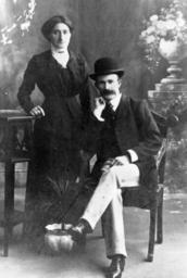 | Keywords: StateLibQld 1 144623 Elizabeth and William Murray, Toowoomba, ca. 1913.jpg en Elizabeth and William Murray Toowoomba ca 1913 Elizabeth Murray nee Heuschele and husband from Middle Ridge Toowoomba Elizabeth Heuschele was born on 29 October 1880 the daughter of Anna Catharina Berghofer and Charles Heuschele Elizabeth Heuschele was married on 16 January 1912 to William Murray Elizabeth Murray is pictured in a dark coloured dress with a high collar Her husband is wearing a bowler hat and a suit and tie Information taken from photograph; from Queensland Pioneer Index CD-Rom 2000; and from Queensland Federation Index CD-Rom 2004 circa 1913 handle 10462/deriv/23298 Item is held by John Oxley Library State Library of Queensland PD-Australia StateLibQld-License Women's clothing of Australia Men's clothing of Australia Moustaches Lounge suits in Australia Hair fashion Hair fashion in Australia People of Toowoomba Queensland 1913 in Queensland Black and white photographs |