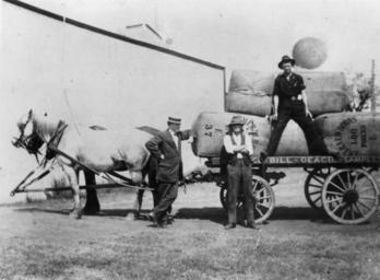 | Keywords: StateLibQld 1 14906 Dray loaded with wool at Emerald Downs Station, ca. 1917.jpg supplied with photograph circa 1917 handle 10462/deriv/146686 Item is held by John Oxley Library State Library of Queensland PD-Australia StateLibQld-License Horses of Queensland Men's clothing of Australia Wool production in Australia Emerald Queensland Black and white photographs Wool wagons in Australia | ||||