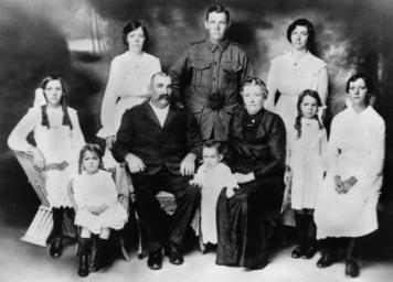 | Keywords: StateLibQld 1 162095 William and Mary Bates and their family, ca. 1916.jpg en William and Mary Bates and their family ca 1916 Family group of Mr and Mrs William Bates nee Stevenson The group consists of standing Mabel Frank and Phoebe and seated left to right Edith Alice William baby Ethel Mary Stevenson Mary and Lucy circa 1916 handle 10462/deriv/110301 Item is held by John Oxley Library State Library of Queensland PD-Australia StateLibQld-License Portraits of Queensland Children of Queensland Children's clothing of Australia Women's clothing of Australia Military uniforms of Australia Black and white photographs |