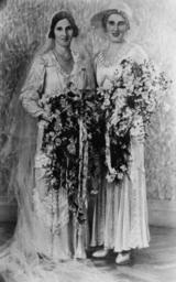 | Keywords: StateLibQld 1 174563 Bride, Julia Drynan, and her attendant, Eva Drynan, ca. 1930.jpg en Bride Julia Drynan and her attendant Eva Drynan ca 1930 Julia Drynan married Jack Enright ca 1930 circa 1930 handle 10462/deriv/101242 Item is held by John Oxley Library State Library of Queensland PD-Australia StateLibQld-License Portraits of Queensland Brides of Australia Bridesmaids of Australia Wedding dresses in Australia Headgear of Australia People with hats Flower bouquets in Australia Black and white photographs |