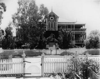 | Keywords: StateLibQld 1 175231 Marlborough Flats in New Farm, Brisbane, ca. 1904.jpg en Marlborough Flats in New Farm Brisbane ca 1904 A block of two-storied solid brick flats situated in Moreton Street New Farm The house has an ornate front wing with fretwork above the entry The upper and lower verandahs overlook a garden of flowering shrubs and trees circa 1904 handle 10462/deriv/99545 Item is held by John Oxley Library State Library of Queensland PD-Australia StateLibQld-License Picket fences in Queensland Black and white photographs of Queensland 1904 Black and white photographs of gardens 1904 Verandas on flats Queensland 1904 in Queensland Apartment buildings in New Farm |