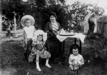 | Keywords: StateLibQld 1 175955 Taking tea in the garden at the Station Master's home, Nerang, 1905.jpg en Taking tea in the garden at the Station Master's home Nerang 1905 Well-dressed woman with some children taking tea in the garden at the Station Master's home Nerang 1905 The tea-tray and tablecloth is on the table The woman and girl sit on chairs and one boy stands and another sits on the grass A gate can be seen to the right and part of the verandah is visible on the left 1905 handle 10462/deriv/99715 Item is held by John Oxley Library State Library of Queensland PD-Australia StateLibQld-License Children of Queensland Groups of people in Australia Clothing of Australia Gardens in Queensland 1900s in Australian society Nerang Queensland 1905 in Australia Black and white photographs Station masters houses in Australia |