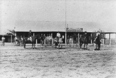 | Keywords: StateLibQld 1 176595 Royal Hotel at Boulia in the 1920s.jpg en Royal Hotel at Boulia in the 1920s Men on horseback in front of the Royal Hotel circa 1920 handle 10462/deriv/100585 Item is held by John Oxley Library State Library of Queensland PD-Australia StateLibQld-License 1920 in Queensland Black and white photographs Royal Hotel Boulia |