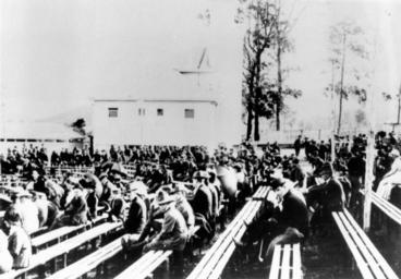 | Keywords: StateLibQld 1 178563 Sitting on benches at the Enoggera Military Camp, 1916.jpg en Sitting on benches at the Enoggera Military Camp 1916 1916 handle 10462/deriv/102964 Item is held by John Oxley Library State Library of Queensland PD-Australia StateLibQld-License Military buildings in Australia Military people of Australia World War I home front in Brisbane Enoggera Queensland 1916 in Australia Black and white photographs | ||||