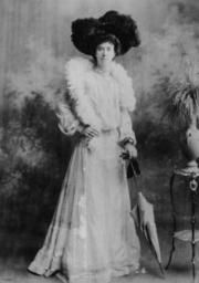 | Keywords: StateLibQld 1 202003 Woman, wearing a large feathered hat and boa, posing for a portrait, 1900-1910.jpg en Woman wearing a large feathered hat and boa posing for a portrait 1900-1910 Woman poses for a portrait wearing a light coloured long skirt and matching blouse both trimmed with lace Across her shoulders she wears a long feather boa and on her head is a hat adorned with large dark plumage She wears jewellery including rings strings of pearls chain necklaces bracelets and possibly on her left hand a very early wristwatch She is holding a pair of gloves and a closed parasol/umbrella Photograph taken by M H Poulsen art photographer Warwick between 1900 1910 handle 10462/deriv/98699 Item is held by John Oxley Library State Library of Queensland Poulsen M H PD-Australia StateLibQld-License Women's clothing of Australia Headgear of Australia People with hats Females with umbrellas People with feathers People wearing wristwatches Warwick Queensland 1900 in Australia Black and white photographs Feather boas |