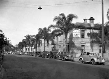 | Keywords: StateLibQld 1 203660 Department of Agriculture building in William Street, Brisbane, ca. 1940.jpg en Department of Agriculture building in William Street Brisbane ca 1940 Cars parked along William Street in front of the Department of Agriculture And Stock building circa 1940 handle 10462/deriv/124080 Item is held by John Oxley Library State Library of Queensland PD-Australia StateLibQld-License Buildings in Brisbane Stone buildings in Queensland Automobiles of Australia Unidentified Arecaceae low quality William Street Brisbane 1940 in Brisbane Black and white photographs |
