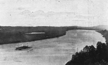 | Keywords: StateLibQld 1 212968 Toowong Reach, Brisbane River, ca. 1906.jpg en Toowong Reach Brisbane River ca 1906 A punt drifts down the river as viewed from 'The Wattles' circa 1906 handle 10462/deriv/138220 Item is held by John Oxley Library State Library of Queensland PD-Australia StateLibQld-License Cable ferries in Queensland Brisbane River 1906 in Queensland Black and white photographs | ||||