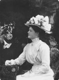 | Keywords: StateLibQld 1 213936 Portrait of a woman in a large hat, 1900-1910.jpg en Portrait of a woman in a large hat 1900-1910 Young woman poses for a portrait wearing a wide-brimmed hat piled high with swathes of fabric and decorated with sprigs of flowers and a butterfly She wears a dress with a high lace collar and light-coloured gloves She is posed in profile looking towards a bunch of flowers including lilies roses and jacaranda flowers between 1900 1910 handle 10462/deriv/137838 Item is held by John Oxley Library State Library of Queensland PD-Australia StateLibQld-License Women's clothing of Australia Headgear of Australia People with hats Flowers of Australia People with gloves in Australia Portraits of Queensland 1900 in Australia Black and white photographs Flower-adorned hats |