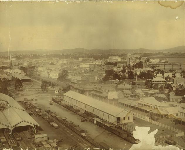 Keywords: StateLibQld 1 235483 Looking down on the activities in the Roma Street station depot.jpg en Looking down on the activities in the Roma Street station depot Taken from the chimney of the new power house at the Countess Street tram depot Various shops along Roma Street at the right of the photograph and further off the reach of the Brisbane River near the Victoria Bridge The central section of Brisbane can be seen along George Queen Streets See also image numbers APO-023-0001-0001; APO-023-0001-0003; APO-023-0001-0004; APO-023-0001-0005 1897 handle 10462/deriv/39562 Item is held by John Oxley Library State Library of Queensland PD-Australia StateLibQld-License Panoramics in Queensland Freight yards in Australia Warehouses in Australia Roma Street railway station 1897 in Queensland Black and white photographs |