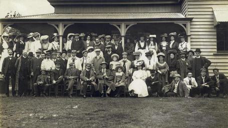 | Keywords: StateLibQld 1 235971 Governor Chelmsford meets the Automobile Club, April 1908.jpg en Governor Chelmsford meets the Automobile Club April 1908 Frederick John Napier Thesiger Baron Chelmsford born August 12 1868 London England died April 1 1933 London was sworn in as Governor of Queensland on 20 November 1905 He had several titles including Viscount Chelmsford and Lord Chelmsford He was the son of a distinguished soldier and grandson of a statesman Lord Chelmsford studied Law and was called to the Bar in 1893 The following year he married Frances Guest the daughter of Lord Wimbourne and they brought their young family with them to Queensland Both Lord and Lady Chelmsford were accomplished musicians he playing violin-cello and she piano They formed chamber music groups at Government House in Brisbane and later in Sydney He left Queensland to become Governor of New South Wales in 1909 and after World War I spent a period as Viceroy of India from 1916-1921 Photograph is part of Governor Chelmsford's private collection The Governor is pictured centre front seated next to the little girl 1908-04-01 handle 10462/deriv/39041 Item is held by John Oxley Library State Library of Queensland PD-Australia StateLibQld-License Groups of people in Australia Headgear of Australia People with hats Frederic Thesiger 1st Viscount Chelmsford Men's clothing of Australia Children's clothing of Australia 1908 in Australia Black and white photographs |