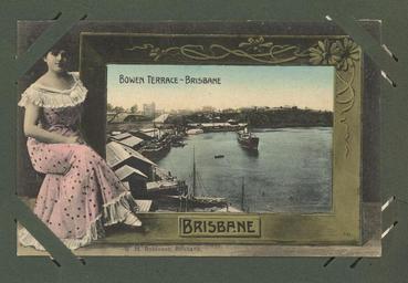 | Keywords: StateLibQld 1 237097 View of the Brisbane River from Bowen Terrace, Brisbane.jpg en View of the Brisbane River from Bowen Terrace Brisbane Young woman with a Gibson girl hair style is posing with a decorative frame of a view of Brisbane She is wearing a spotted voile dress The main view is of the wharves in the city of Brisbane circa 1907 handle 10462/deriv/38064 Item is held by John Oxley Library State Library of Queensland Contributor s H Robinson PD-Australia StateLibQld-License Postcards of Queensland Women's clothing of Australia Hair fashion in Australia Warehouses in Australia Wharves and quays in Australia Views of Queensland 1907 in Australia Black and white photographs Images of postcards from the State Library of Queensland |