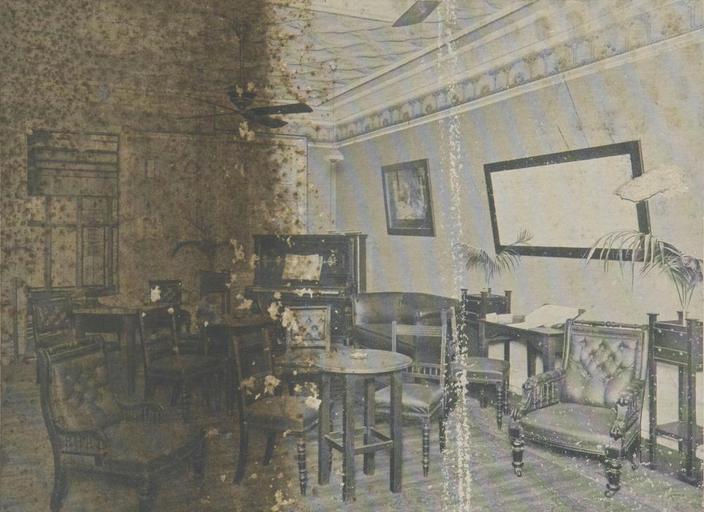 | Keywords: StateLibQld 1 246589 Sitting room in Vallely's Hotel Australian, Brisbane, ca. 1910.jpg en Sitting room in Vallely's Hotel Australian Brisbane ca 1910 Vallely's Hotel Australian on the corner of Queen and Albert Streets Brisbane was etablished in 1869 The proprietor was Peter Vallely The sitting room has a piano in the corner several comfortable chairs and a couch There are also tables and chairs circa 1910 handle 10462/deriv/35702 Item is held by John Oxley Library State Library of Queensland PD-Australia StateLibQld-License Furniture in Australia Rooms in Australia Hotel Australian Brisbane 1910 in Australia Black and white photographs |