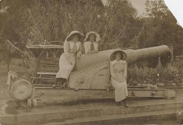 | Keywords: StateLibQld 1 252701 Sitting on the Armstrong Gun in the park at Toowoomba, 1911.jpg supplied with photograph 1911 handle 10462/deriv/120116 Item is held by John Oxley Library State Library of Queensland Smith William PD-Australia StateLibQld-License Women's clothing of Australia Groups of people in Australia Families of Australia Headgear of Australia People with hats Artillery of Australia Toowoomba Botanic Gardens 1911 in Australia Black and white photographs MLR 64 pounder 64 cwt Mark III Gun |