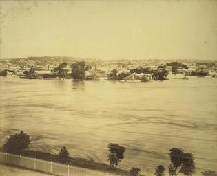 | Keywords: StateLibQld 1 254657 Brisbane River in flood, looking towards South Brisbane, 1893.jpg en Brisbane River in flood looking towards South Brisbane 1893 February 4 1893 saw the highest floods on record in Brisbane and elsewhere; 6ft water in Edward Street at the Courier Buildings hundreds of houses washed down river trees uprooted and shipping torn from moorings The shores of Moreton Bay were strewn with wreckage On 5th Indooroopilly Bridge was washed away; pm the 6th the northern end of Victoria Bridge disappeared; flood waters rose at Brisbane to 23 feet 9 inches above mean spring tide and 10 feet over the previous highest flood mark 1890 Similar disaster befell other towns where bridges and houses disappeared by the hundreds; at Gympie many of the mines were blown up; much loss of life reported particularly from Ipswich Rainfall at Crohamhurst head of Brisbane water was 105 inches between 1st January and 11th February A second flood almost reaching the level of the first was experienced on the 19th a lesser one having prevailed on the 13th South Brisbane was without fresh water for some days and the whole of Brisbane practically in darkness at night A very large relief fund 70 000 pounds was established subscriptions in money and in kind arriving from England as well as from the other colonies Information taken from Queensland State Archives database 2004 - 2006 retrieved 11 January 2006 from <http //www archives qld gov au/exhibitions/virtualexhibition/images/1893introduction asp> 1893 handle 10462/deriv/40232 Item is held by John Oxley Library State Library of Queensland PD-Australia StateLibQld-License Brisbane River 1893 Brisbane flood Black and white photographs Floods in South Brisbane Landscapes of Queensland Ships in Brisbane |