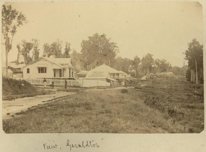 | Keywords: StateLibQld 1 255885 P. W. Earls home and business in Geraldton, Queensland, ca.1885.jpg en P W Earls home and business in Geraldton Queensland ca 1885 Store belonging to Mr Earls in the town of Innisfail formerly known as Geraldton The house and business appear to share the same building block Smaller timber homes line the street circa 1885 handle 10462/deriv/41132 Item is held by John Oxley Library State Library of Queensland PD-Australia StateLibQld-License Shops in Queensland Houses in Innisfail Black and white photographs Geraldton Innisfail |