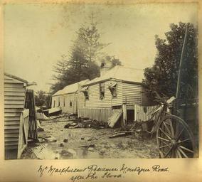 | Keywords: StateLibQld 1 256184 MacPherson residence at Montague Road after the floods, South Brisbane, 1893.jpg en MacPherson residence at Montague Road after the floods South Brisbane 1893 February 4 1893 saw the highest floods on record in Brisbane and elsewhere; 6ft water in Edward Street at the Courier Buildings hundreds of houses washed down river trees uprooted and shipping torn from moorings The Indooroopilly Bridge was washed away and the northern end of Victoria Bridge disappeared Floodwaters rose at Brisbane to 23 feet 9 inches above mean spring tide and 10 feet over the previous highest flood mark 1890 A second flood almost reaching the level of the first was experienced on the 19th a lesser one having prevailed on the 13th South Brisbane was without fresh water for some days and the whole of Brisbane was practically in darkness at night A very large relief fund 70 000 pounds was established subscriptions in money and in kind arriving from England as well as from the other colonies Information taken from Queensland State Archives database 2004 - 2006 retrieved 11 January 2006 from <http //www archives qld gov au/exhibitions/virtualexhibition/images/1893introduction asp> 1893-02-01 handle 10462/deriv/122549 Item is held by John Oxley Library State Library of Queensland PD-Australia StateLibQld-License Houses in South Brisbane Queensland Wagons in Australia 1893 Brisbane flood Black and white photographs Floods in South Brisbane |