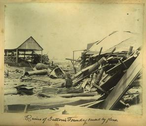 | Keywords: StateLibQld 1 256188 Ruins of Sutton's Foundry caused by floodwaters, South Brisbane, 1893.jpg en Ruins of Sutton's Foundry caused by floodwaters South Brisbane 1893 February 4 1893 saw the highest floods on record in Brisbane and elsewhere; 6ft water in Edward Street at the Courier Buildings hundreds of houses washed down river trees uprooted and shipping torn from moorings The Indooroopilly Bridge was washed away and the northern end of Victoria Bridge disappeared Floodwaters rose at Brisbane to 23 feet 9 inches above mean spring tide and 10 feet over the previous highest flood mark 1890 A second flood almost reaching the level of the first was experienced on the 19th a lesser one having prevailed on the 13th South Brisbane was without fresh water for some days and the whole of Brisbane was practically in darkness at night A very large relief fund 70 000 pounds was established subscriptions in money and in kind arriving from England as well as from the other colonies Information taken from Queensland State Archives database 2004 - 2006 retrieved 11 January 2006 from <http //www archives qld gov au/exhibitions/virtualexhibition/images/1893introduction asp> 1893 handle 10462/deriv/122553 Item is held by John Oxley Library State Library of Queensland PD-Australia StateLibQld-License Floods in South Brisbane 1893 Brisbane flood Black and white photographs |