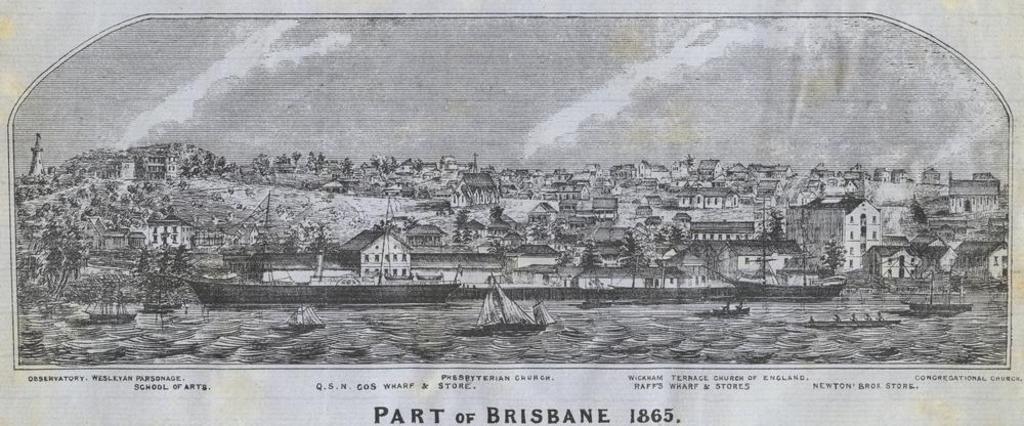 | Keywords: StateLibQld 1 258991 Part of an early panorama of the city of Brisbane, 1865.jpg en Part of an early panorama of the city of Brisbane 1865 Some buildings viewed across the Brisbane River include The Observatory The Windmill Raff's Wharf Wickham Terrace Church of England and Newton Brothers' Store See also APA-059-01-0008 1865 handle 10462/deriv/34090 Item is held by John Oxley Library State Library of Queensland PD-Australia StateLibQld-License Views of Queensland Cityscapes in Queensland 1865 in Brisbane Black and white photographs Wickham Terrace Brisbane |