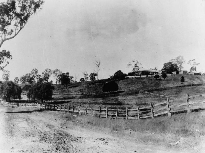 Keywords: StateLibQld 1 70647 James Brimblecombe's residence 'Fairview' at Brookfield, Brisbane, 1920s.jpg supplied with photograph Fairview was the second home of the Brimblecombe family who were pioneers of the Brookfield area James Stephens Brimblecombe arrived in Brisbane in April 1869 from the Hunter River district of New South Wales He obtained 71 acres of scrub land on Gold Creek and within a few months had built a small home of hardwood slabs which was named 'Bannerfield' His wife Lucinda and children arrived shortly after Fairview was built in 1874 on Rafting Ground Road being closer to the local school and church For a time a room off the verandah at Fairview operated as the local post office The Brimblecombes prospered at dairying and agriculture selling butter and eggs James died in 1915 and his wife Lucinda in 1912 Brookfield regarded as one of Brisbane's later developing suburbs actually was one of the earliest areas settled The fertile country in the district was farmed as early as 1850 with dairying and small crops being the main occupation By the early 1870s population growth warranted the establishment of the first primary school in the area Timber getting was also an early industry and there are the remains of a number of old gold mines in the district between 1920 1925 handle 10462/deriv/85247 Item is held by John Oxley Library State Library of Queensland PD-Australia StateLibQld-License Countryside in Australia Fences in Australia 1920 in Brisbane New South Wales Black and white photographs Gold Creek Queensland |