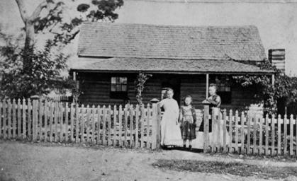 | Keywords: StateLibQld 1 71355 Woman and two children standing outside a Gympie house in 1871.jpg en Woman and two children standing outside a Gympie house in 1871 Two girls and a woman stand near the gate in front of an identified wooden residence The verandah supports are covered in creeper and the roof is tiled with shingles The girls are wearing dresses and boots Gympie is a city in south-eastern Queensland situated on the Mary River about 162 kilometres north of Brisbane Gympie is the centre of an important dairying and agricultural district In the early days timber was a significant industry 1871 handle 10462/deriv/86687 Item is held by John Oxley Library State Library of Queensland Forster Edward H PD-Australia StateLibQld-License Children's clothing of Australia Verandas on single story Queensland houses Women's clothing of Australia Picket fences in Queensland Houses in Gympie 1871 in Queensland Black and white photographs |