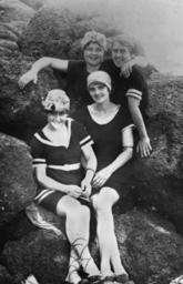 | Keywords: StateLibQld 1 80287 Group of women posing in their swimming costumes on the rocks at Tweed Heads, 1920-1930.jpg en Group of women posing in their swimming costumes on the rocks at Tweed Heads 1920-1930 Four women in woollen swimsuits pose on rocks on the beach at Tweed Heads in the 1920s All four are wearing dark coloured swimsuits with light coloured contrasting trim and scarves tied around their heads One of the women front left is wearing shoes with laces criss-crossed up her ankles The woman seated next to her is wearing a 'slave bracelet' on her upper arm which was fashionable in the 1920s between 1920 1930 handle 10462/deriv/141941 Item is held by John Oxley Library State Library of Queensland Simpson C G PD-Australia StateLibQld-License Women's clothing of Australia Swimwear of Australia Rocks in Australia Beaches of New South Wales Shoes of Australia Australia in the 1920s 1920s swimwear Black and white photographs of Australia |