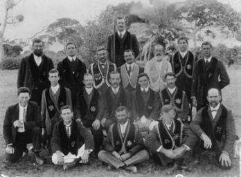 | Keywords: StateLibQld 1 91236 Hibernians of Bowen, ca. 1914.jpg supplied with photograph circa 1914 handle 10462/deriv/66563 Item is held by John Oxley Library State Library of Queensland PD-Australia StateLibQld-License Clubs and societies in Australia Men's clothing of Australia Insignia Bowen Queensland Black and white photographs Ancient Order of Hibernians |
