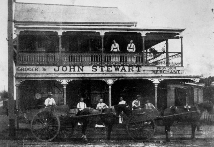 | Keywords: StateLibQld 1 95796 John Stewart's grocery store at Annerley around 1913.jpg en John Stewart's grocery store at Annerley around 1913 Staff and customers outside John Stewart's grocery and provisions store on the corner of Ipswich Road and Clive Street around 1913 1913 handle 10462/deriv/73533 Item is held by John Oxley Library State Library of Queensland PD-Australia StateLibQld-License Shops in Queensland Grocery stores in Australia Verandas on Queensland shops Horse-drawn carts in Australia Annerley Queensland Black and white photographs |