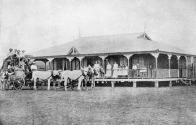 | Keywords: StateLibQld 2 104504 Coach outside the North Star Hotel, Richmond, western Queensland, ca.1904.jpg from the Queensland Post Office Directory 1905 circa 1904 handle 10462/deriv/89820 North Queensland Register 14 November 1904 p VII PD-Australia StateLibQld-License Images from North Queensland Register Hotels and pubs in Queensland Black and white photographs Stagecoaches in Queensland Verandas on Queensland hotels Richmond Queensland Horses of Australia Horse teams Passengers | ||||